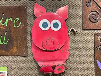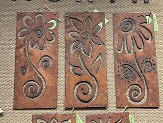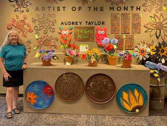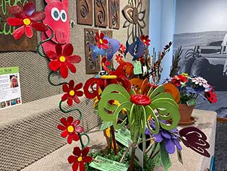 Come support local artist of the month: We’re excited to feature Audrey Taylor of Lawrence, KS this month at the Hansen Museum! In 2013 Audrey discovered a new creative outlet when she purchased a plasma cutter and ventured into the captivating world of metal art. Drawing inspiration from the beauty of nature and the challenge of transforming discarded metal into something extraordinary, Audrey crafts exquisite flowers, whimsical bugs, charming animals, and one-of-a-kind wall art using both a plasma cutter and welder. Her imaginative creations will be available for purchase throughout the month of October — a perfect opportunity to take home a piece of her artistry.